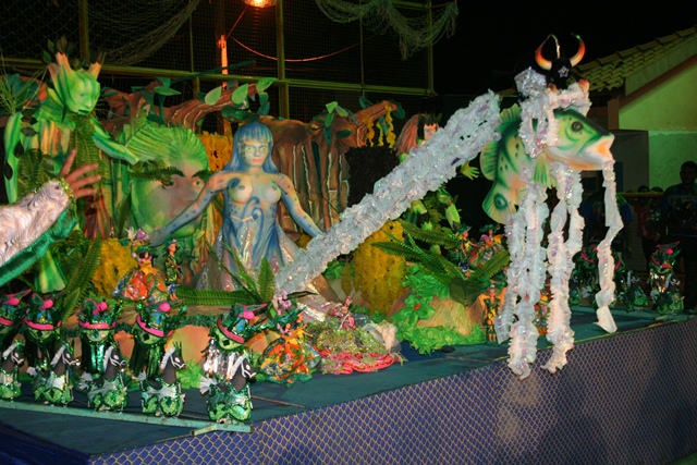 Cerca de quarenta pessoas entre alunos e ex-alunos da Escola de Arte “Irmão Miguel de Pascalle”, fizeram parte do espetáculo apresentado no complexo Benedito Azedo. O Boi Caprichoso miniatura a estrela da festa apareceu em um lança em cima de um tucunaré, com articulações em linhas de nylon que imitavam os movimentos reais de um boi.